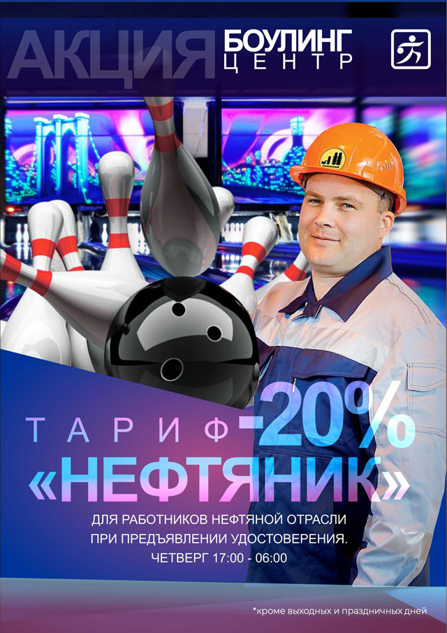 - скидка 20% для работников нефтяной отрасли (действительна в четверг с 17:00 до 6:00 при предъявлении удостоверения).